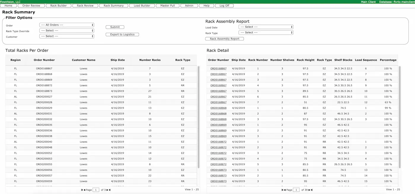 Empower your customer service team to make real-time adjustments to racks and truck payloads for optimal utilization and transportation costs, precise product selection, and adherence to the highest quality standards before releasing orders for operations.